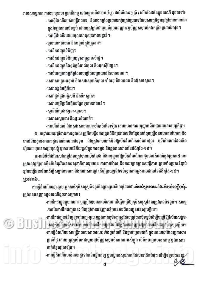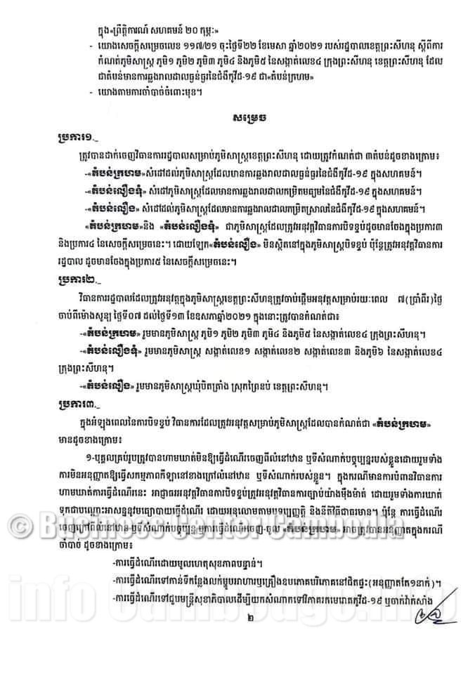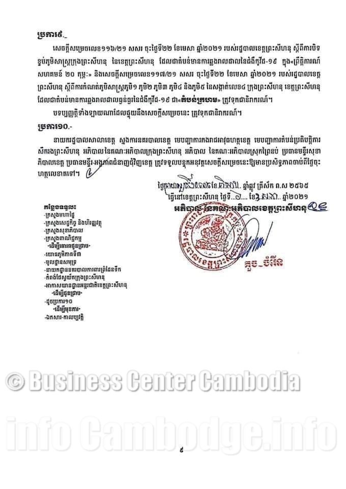 Le 06 Mai 2021 à 19H00 - Dans les zones bloquées des capitales et des provinces, l'administration provinciale de Preah Sihanouk a publié un avis