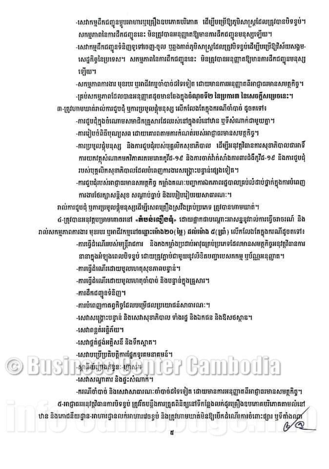 Se référant à l'instruction n ° 02 du 25 avril 2021 du gouvernement royal du Cambodge pour renforcer la mise en œuvre des mesures de prévention de la propagation du virus Covid-19 dans les capitales, provinces et administration provinciale de Preah Sihanouk, veuillez informer les citoyens et le public des mesures pour éviter la propagation de la maladie Covid- 19.