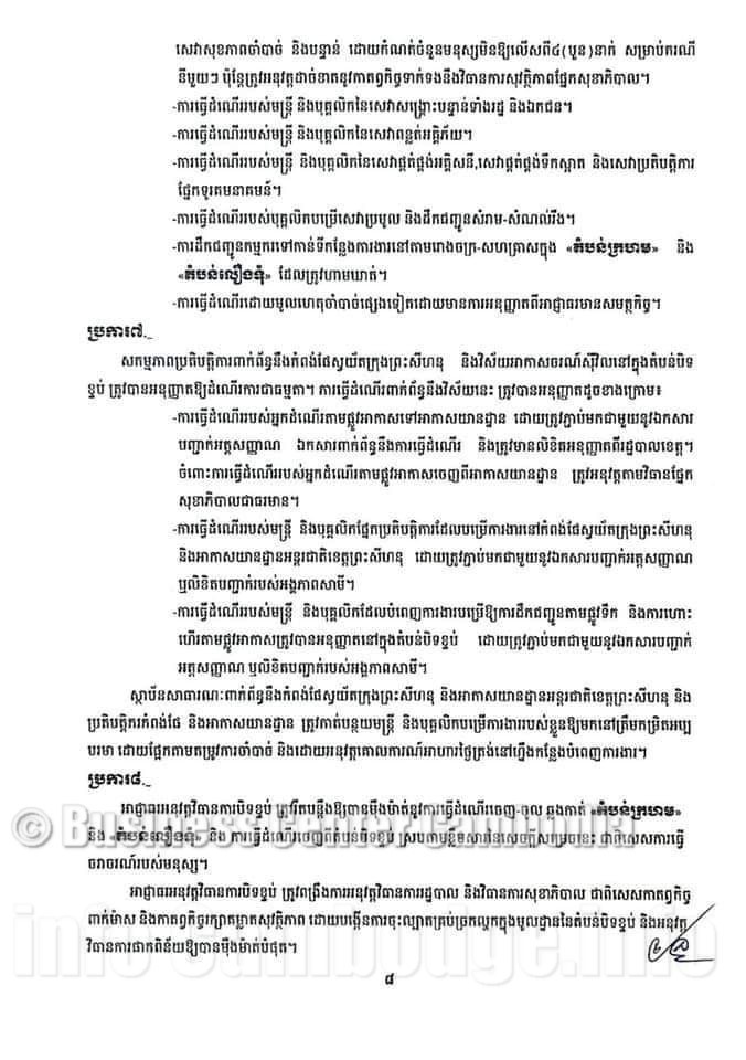 Pour faciliter le voyage des citoyens et du grand public dans la Province de Preah Sihanouk, l'administration provinciale de Preah Sihanouk a décidé d'annuler complètement la notification n ° 656/21, datée du 06 mai 2021, mais la population et le public doivent mettre en œuvre des mesures de prévention de santé.